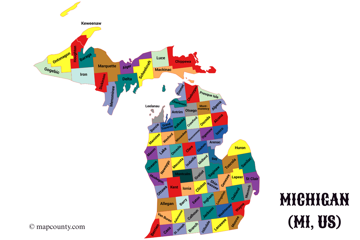 Below is a complete list of Michigan’s 83 counties, including county seats, area, and major cities and towns.| County | County Seat | Area (sq mi) | Major Cities and Towns |