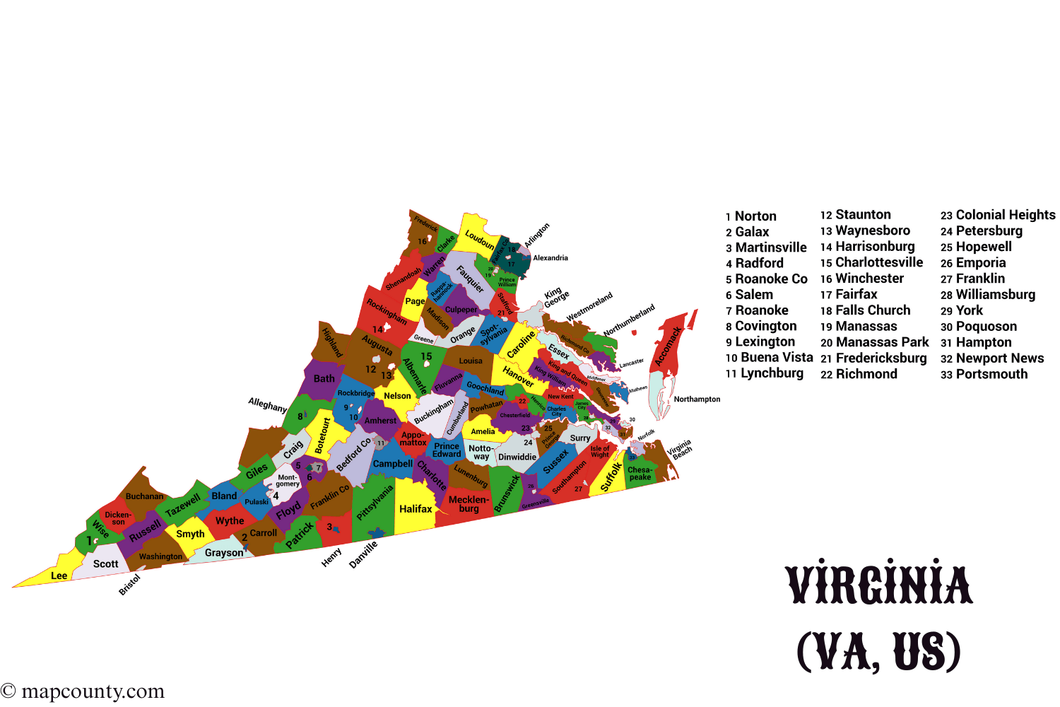 Virginia is well known for its independent city structure. A city is not inside a county, even if it is surrounded by one. This is why you may see a county seat listed as a city name. It matters when you sort addresses or match datasets.